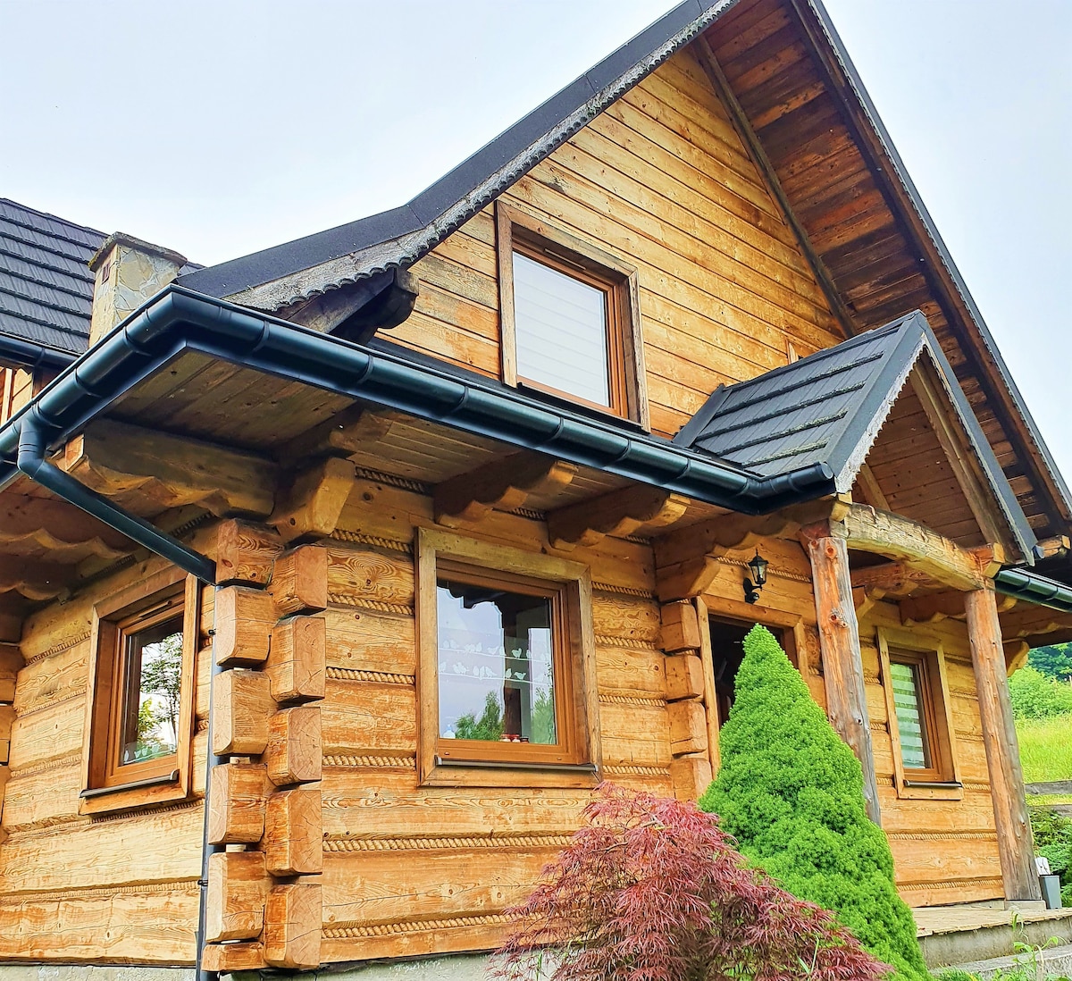 Dom "Modrzewiówka". Otwórzcie drzwi do rajskiego miejsca, gdzie natura i malowniczy krajobraz są naszymi najbliższymi sąsiadami. Przeżyjcie niezapomniane chwile otoczeni natura i świeżym powietrzem. Czekają tu na Was również przytulne wnętrza z klimatycznym wystrojem, które zapewnią Wam niezapomniany komfort i relaks. Przybywajcie do nas, by odkrywać piękno natury, delektować się wspaniałymi widokami i cieszyć się niezwykłą atmosferą Modrzewiówki.