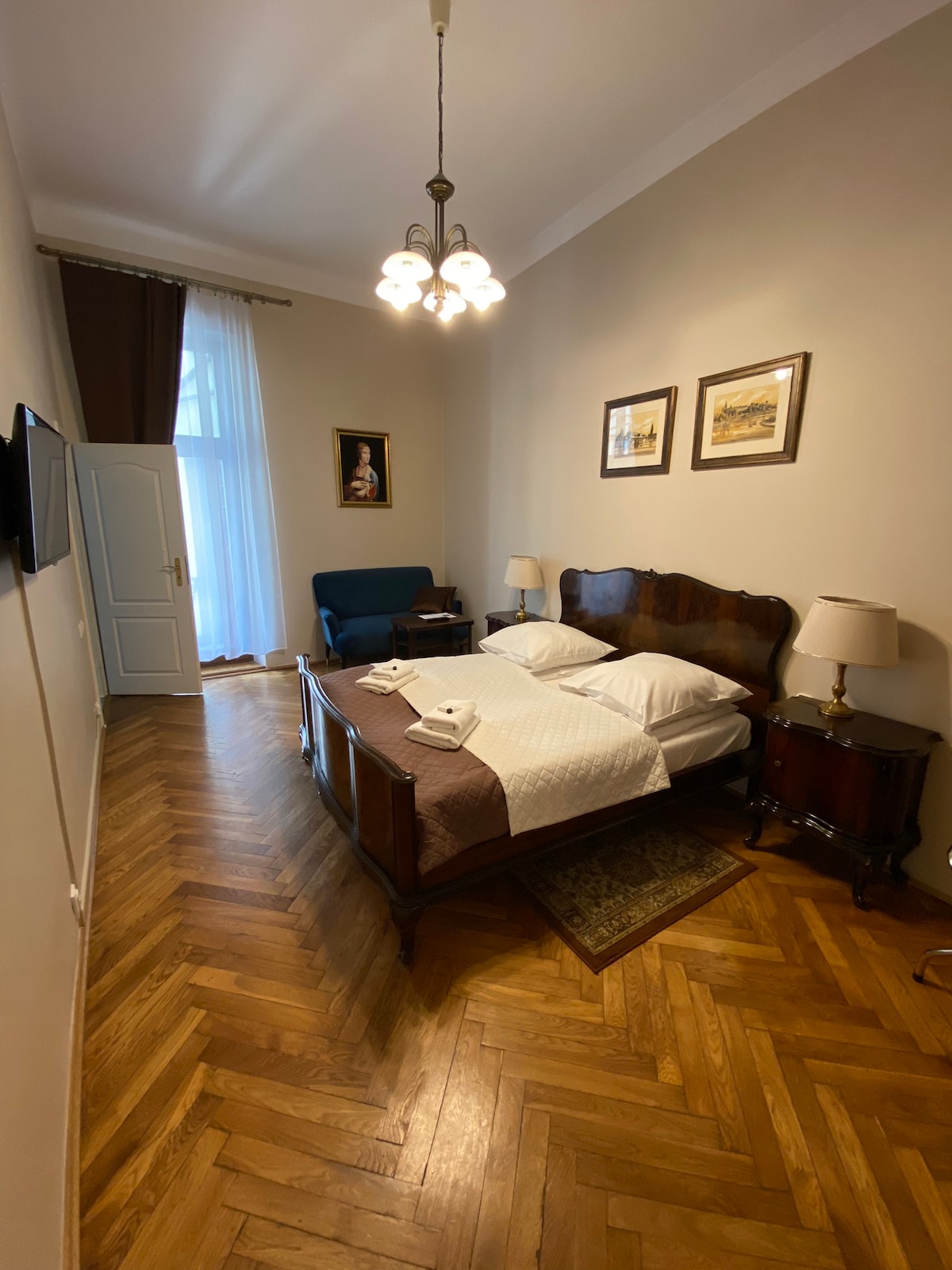 Luxurious, but very cozy and quiet apartment on the first floor of a historic tenement house, located a few steps from the Main Square. Ideal for lovers of sightseeing during the day and city entertainment at night. It consists of two rooms, a bathroom with a washing machine, rack dryer and a toilet and an fully equipped kitchen. There are two comfortable double beds and one single bed. City view. I always take care to prepare everything for your comfortable stay. AC Air-Conditioning inside