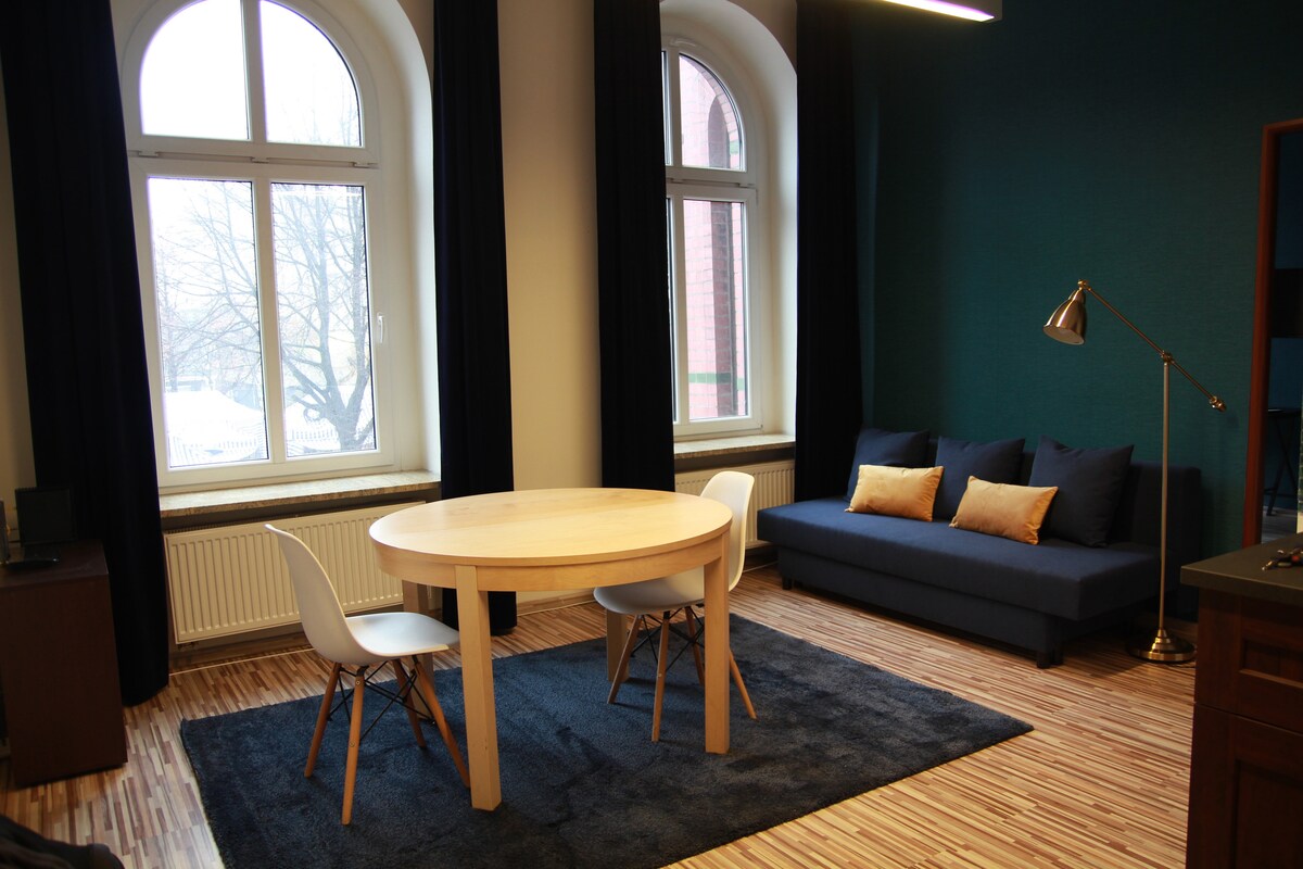 Open the lush floor-to-ceiling drapes or sip some coffee on the balcony and look out onto a cityscape that's barely changed in well over a century. On the left, you'll see the medieval gothic towers of the St. Mary's Basilica from where the famous trumpet call is played. This bright, stately studio features chic furnishings, old tiled stove with original copper elements and stylish pieces of modern art. Situated next to the Market Square, it is the best place to explore the city's rich history.