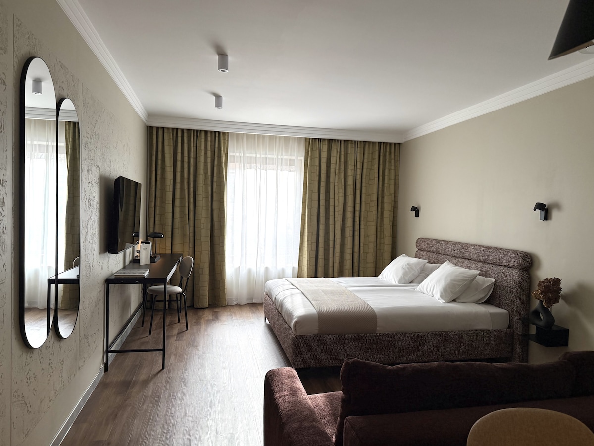Step into comfort at Nola 1—an elegant one-bedroom apartment just minutes from Kraków’s Main Square. This thoughtfully designed space features a fully equipped kitchen, air conditioning, fast Wi-Fi, and stylish touches throughout. Enjoy morning coffee at the dining table or unwind with a glass of wine after exploring Wawel or Planty Park. Perfect for couples or solo travelers seeking comfort and quiet in the heart of the city.