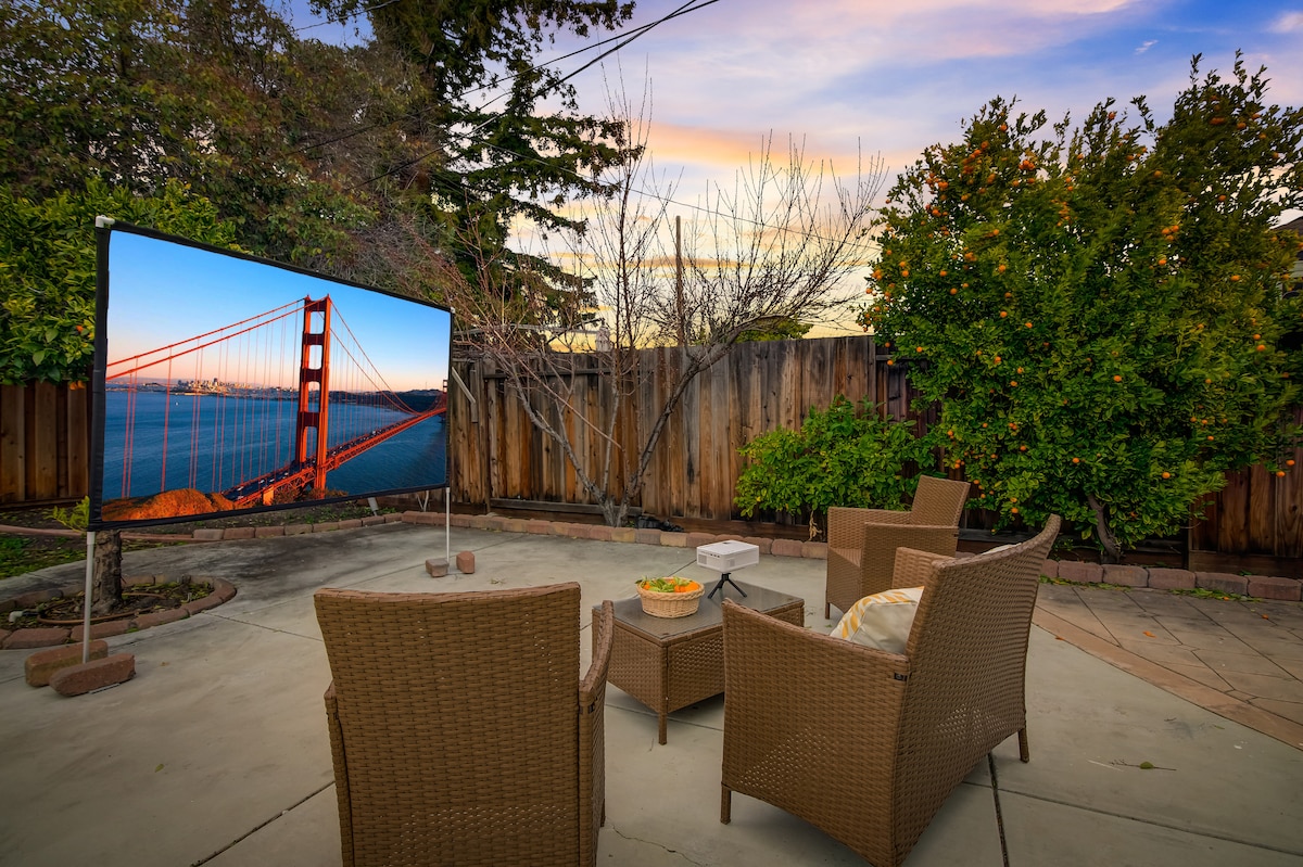 全新!苹果公园附近的舒适住宿,带户外电影