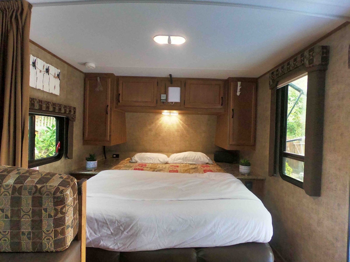New Rockwood ( 2021 Minilite T2109S) in Alum Rock, E San Jose. All to yourself. Short/long term welcomed Features: Queen Bed Kitchen: Refrigerator, Stove, Sink, Microwave/Oven Bathroom:Shower, Toilet Dining /Working Table Wifi( eat. ~40MB/s) Free K cup coffee Washer and dryer in main house Dedicated parking spot. Short drive to downtown San Jose, SJ Airport, Caltrain & Light rail. Easy access to main highway (101,680 & 280).