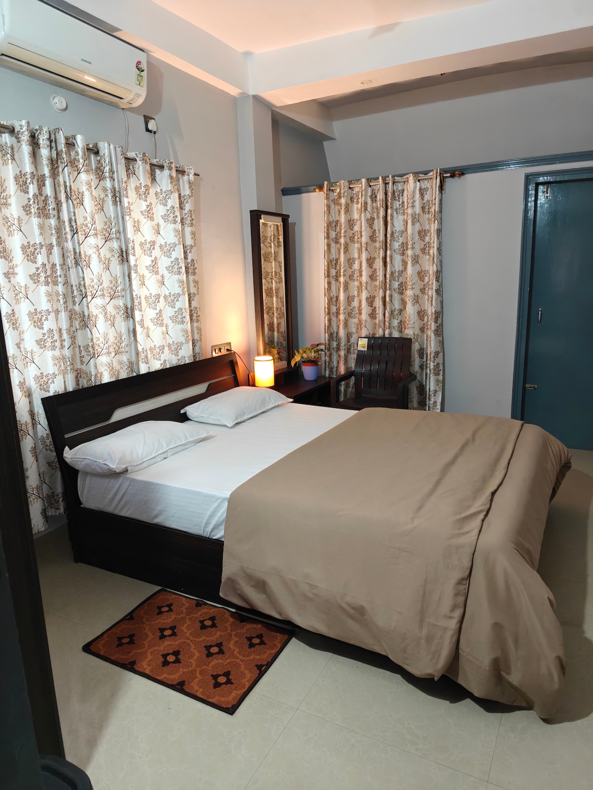 We are supremely positioned: a 7-min ride from Bagdogra Airport, 11 mins from NJP Station, and 20 mins from the Bus Terminus. 24/7 transport via the Main Highway, a 3-min stroll. Amenities: Two 7ft×6ft king beds, 70% blackout curtains, moody lighting, 60mbps Wi-Fi, fully appointed kitchen, 2 western loos, and a workstation. Valid ID (Local ID accepted). Early/late check-in/out: ₹200 per hour. No visitors allowed on the property. 24/7 backup powers basic lights, AC and fancy lights excluded.