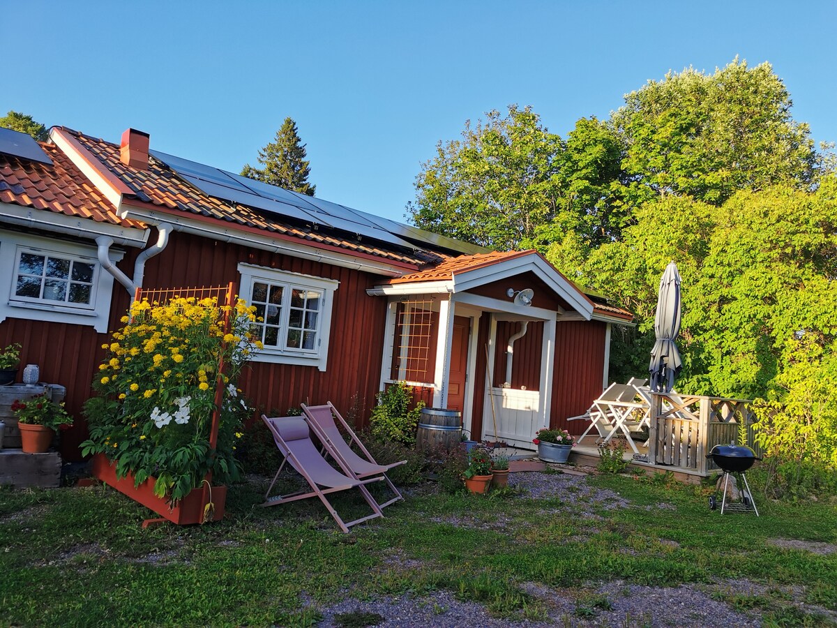 Welcome to tranquil Västanvik in the heart of Dalarna and this charming cottage, just 5 km from central Leksand. Here, you're greeted by a stunning view of Lake Siljan. On the enclosed porch, enjoy dinners from early spring to late fall, thanks to infrared heating. Inside, the fireplace is prepared for you to light, adding maximum coziness. Firewood is included! This is the perfect starting point for your excursions. Bed linen and towels are provided, and electric car charging is available.