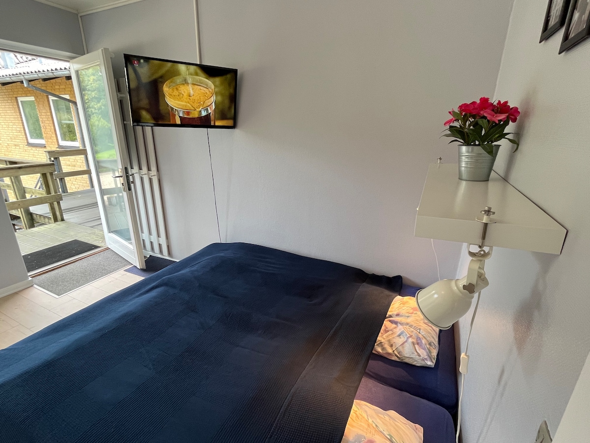Vi har en dejlig Bed and Breakfast lejlighed med plads til hygge både inde og ude. Du får eget køkken, badeværelse, stue, soveværelse og har I elbil, så kan I lade hos os. Lejligheden har egen indgang ud til en skøn have med mulighed for både underholdning og afslapning. Du finder alt fra havemøbler, hængekøje samt udendørs aktiviteter i form af spil og en trampolin. Der er flere hyggekroge, som meget gerne må benyttes, lige som der er Mexico pejs og grill i haven. Gratis P-plads foran huset.