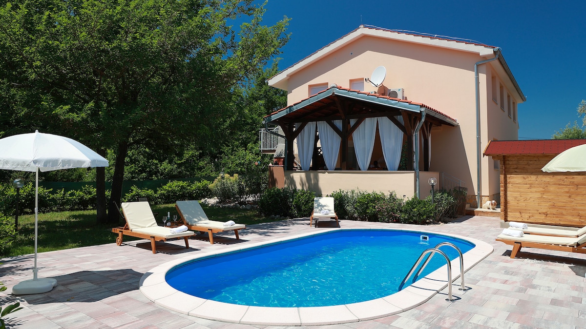 Villa Bell'Aria is situated in a quiet location surrounded by nature and at the same time only a short drive away from the famous coastal town of Crikvenica. With a total of 4 bedrooms, it can accommodate up to 8 people. Outside, a private pool invites you for a refreshment during hot summer days. The pool can be heated on guest request, with additional fee. The area with sun loungers is most of the day in the shade and offers a breathtaking view of the picturesque landscape - pure relaxation!