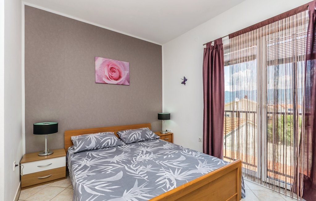 Das modern und gemütlich eingerichtete Apartment liegt im Dachgeschoss des Hauses und bietet Platz und Komfort für 2 bis 3 Personen. Im Apartment finden Sie ein Esszimmer mit gut ausgestatteter Küche, ein Schlafzimmer mit einem Doppel- und einem Einzelbett, ein Badezimmer mit Dusche und WC. Das Apartment bietet zudem einen Balkon mit Bestuhlung und schönem Meerblick. Im Außenbereich erwartet Sie die gemeinsame Terrasse mit Liegen, Grill und mit wunderschönem Swimmingpool.