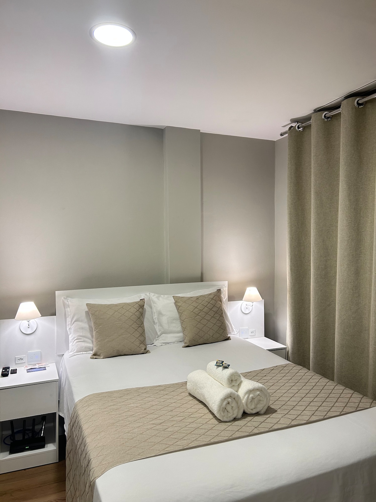 The apartment unites classic and modern, Impeccable location, close to everything! Tourist spots, SUP, Restaurants etc. being able to do everything on foot! Room with 32 cable TV, double bed, wardrobes, etc. Living room with TV50 inches 4K SMART cable (80 channels) HBO MAX. KT: Stove, Refrigerator, Blender,sandwich maker, Water filter. The cleanliness is impeccable, being another differential for those who stay. Viable for home office with 2 Wi-FI. Easy Checkin and Checkout. Accepts small pets.
