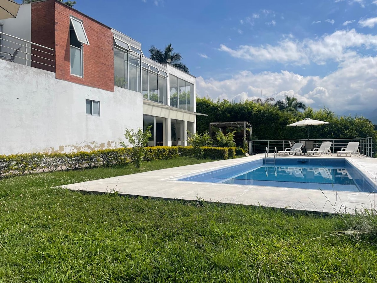 Hermosa Villa para descansar en familia o con los amigos. Cuenta con sendero ecológico, vista a las montañas, avistamiento de aves, piscina, área de bbq, Wifi, muy iluminada, clima cálido con un promedio de 23°. Espacios amplios en la zona social tipo americano, 4 habitaciones con baño independiente y baño social, parqueadero cubierto para 3 carros y a 15 minutos del pueblo.