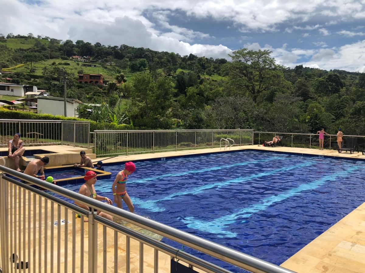 Relájate con toda la familia en este tranquilo lugar para disfrutar de la naturaleza, con una maravillosa panorámica. La casa cuenta con 4 alcobas, 4 baños, 3 niveles, cocina integral, sala, comedor, terrazas, jacuzzi, piscina estructural para niños, BBQ, jardines, parqueadero. En conjunto cerrado con vigilancia las 24 horas, piscinas, jacuzzis, canchas polideportivas, sendero ecológico, BBQ, parque infantil, avistamiento de aves, etc. Temperatura promedio de 20 a 25 grados centígrados.