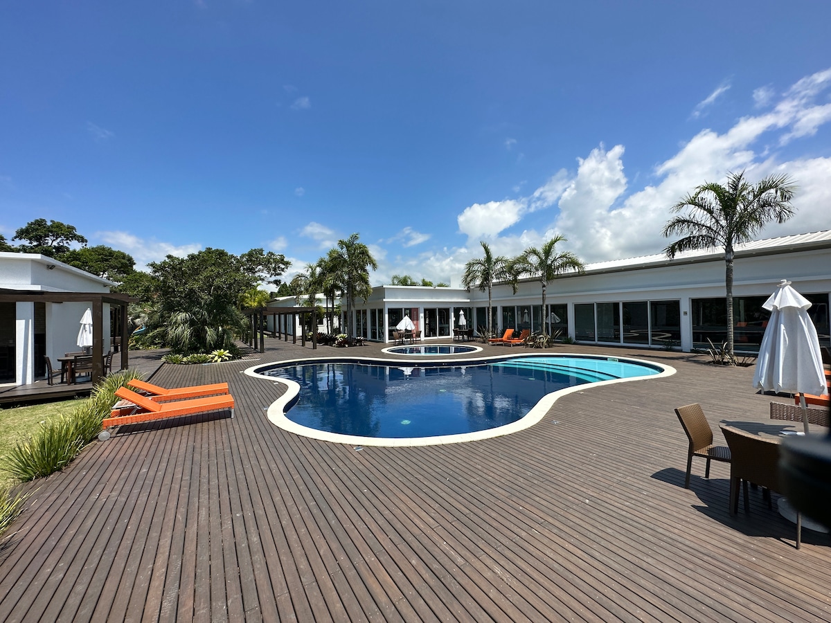 Casa de alto Padrão no Cond Rosa Internacional, ao Lado da Surf Land, Casa com 350m2, 3 quartos sendo 2 suítes com 50m2, aTv , Sala c/ smart Tv 65" e Ar cond quente e frio, Wifi, churrasqueira integrado com a sala, cozinha completa, com máquina de lavar louça, microondas, geladeira, ilha gourmet, área de lazer com Piscina, Piscina Aquecida, Saunas, Sala de Jogos, Brinquedoteca, playground, Academia, Quadra de tênis, quadra poliesportiva, Raia aquecida . Portaria 24 horas