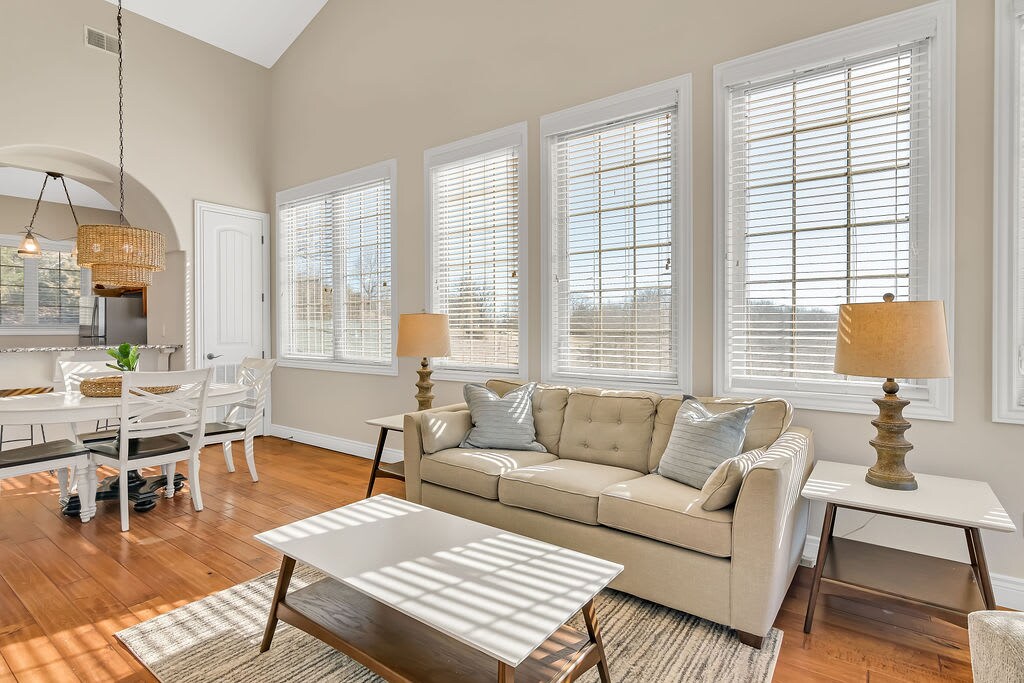 A cheerful, stair-free 2BR/2BA that blends comfort and charm with pops of personality. Relax on the spacious private deck, or head out to enjoy the pool & hot tub (seasonal - typically open Memorial Day through Labor Day - please ask for exact dates), nature trails, and Silver Dollar City. Fully stocked kitchen, comfy living area, and all the thoughtful touches that make this a cozy, convenient home base for your Branson getaway.