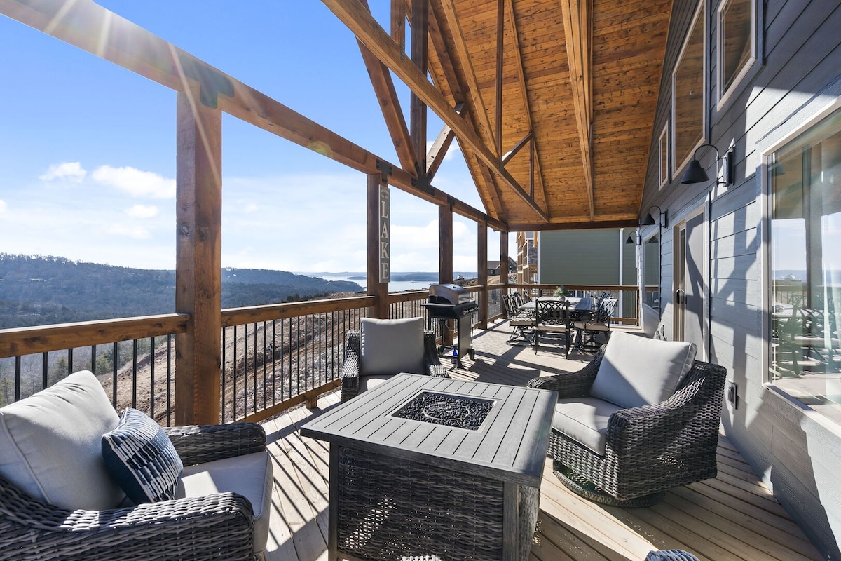 Welcome to the Top of the World Lodge! This modern 5 bedroom, 6 bathroom home has lots of sleeping space and boasts of breathtaking VIEWS OF TABLE ROCK LAKE as well as all the entertainment options available for a vacation full of amazing memories! This home is ready to entertain your crew with a private PUTTING GREEN, privite HOT TUB, pool table, shuffleboard, foosball and so much more!