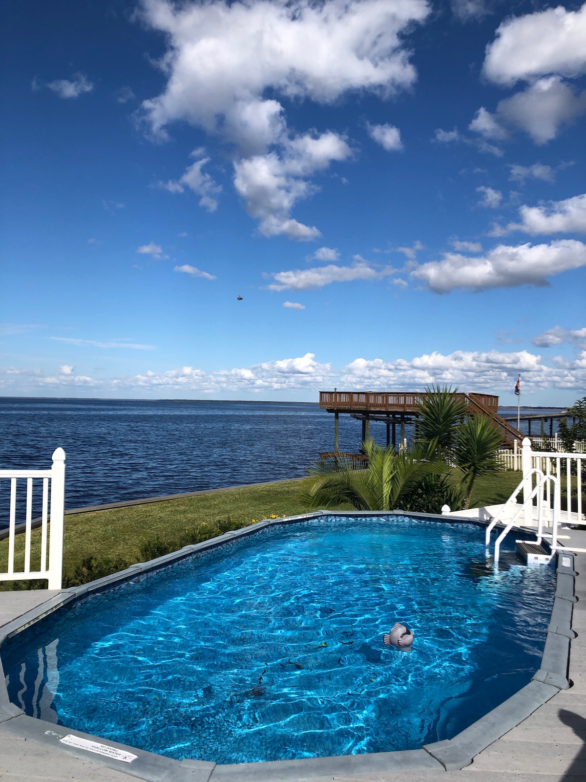 Bring your fishing gear or small boat to enjoy a fun getaway at the Captain's Cottage with a dock on Lake Stella. Key-less entry allows for self check-in and welcomes you to this comfortable clean 962 sq. ft. space with two queen size beds, one bathroom, full kitchen, florida room, and a fenced-in backyard. A paddle boat is provided. Three kayaks and 2 bicycles are also available! Or you can bring your boat and go fishing! Enjoy swimming, lovely sunsets and strolls around the beautiful lake.