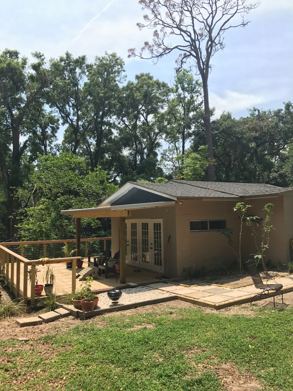 Enjoy stunning lake views while sipping your morning coffee on the back deck. Lots of paddling options exist here on spring-fed Sand Lake. Hosts offer a paddle boat, canoe, and paddle boards for your enjoyment. Practice yoga on your own private deck, fish from the dock, or star gaze around the campfire each night. Discover nearby Florida Springs and beaches all within 30 - 60 minutes. This 800 sq. ft cottage is centrally located between Gainesville & Saint Augustine. Netflix | Hulu | Wifi | BBQ