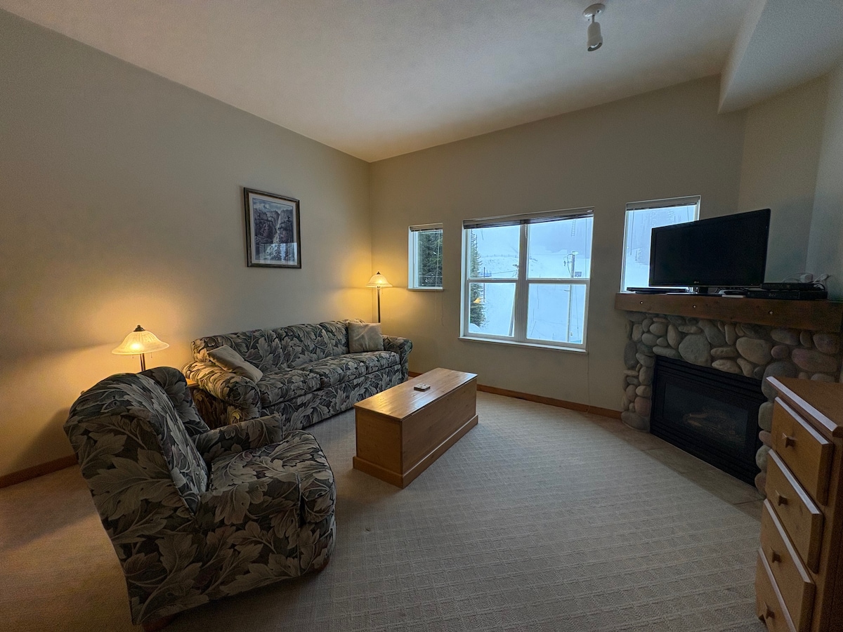 Winter or Summer, you will be close to everything the mountain has to offer when you stay at this centrally located mountain retreat. Walk out the door for easy access to - downhill, X Country, snowshoe trails, Tube Town, skating rink. In the summer you are close to biking and hiking. This bright and spacious ground level condo is located in Creekside complex at the base of the Silver Queen chairlift. You are only a short walk away from the village. Sleeps 5 with the sofa bed