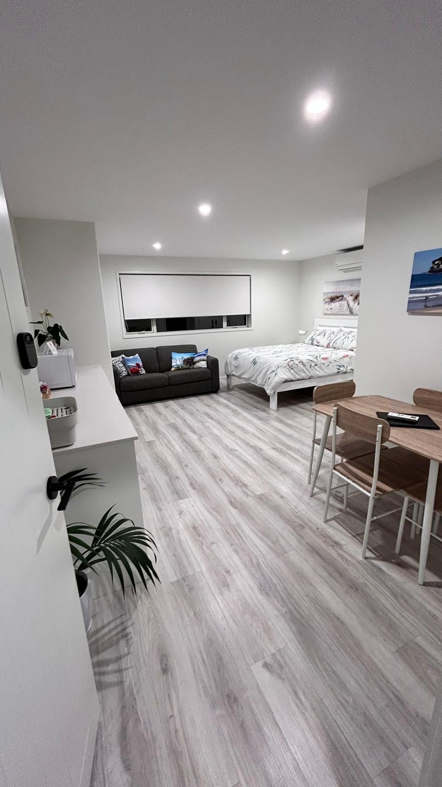 Only a quick walk to the beach and Manly village there is plenty to keep you occupied and a great choice of places to eat and drink. The bay is perfect for swimming, boating, fishing, stand up paddling, windsurfing, sailing or just relaxing. Manly Sailing Club is across the road and hosts many regattas. The open plan studio is new and beautifully finished, located above the owners garage with a separate entrance.