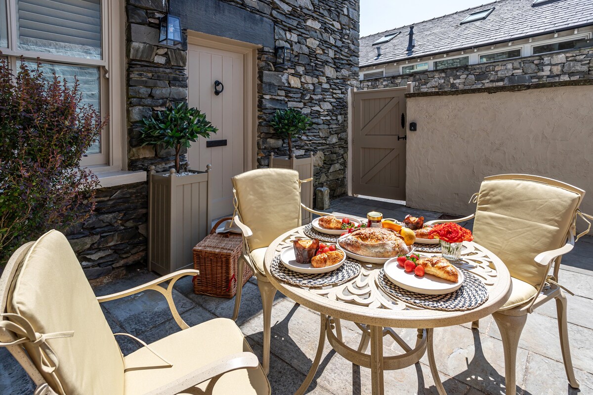 Drakes Cottage is situated within the courtyard of a former 18th century coaching stables. The medieval village of Cartmel is a 15 minute walk away, via public footpath through the surrounding fields or country lanes. Famous for its 12th century Priory, 2 Michelin starred restaurants & delicious sticky toffee pudding. The Edwardian town of Grange is a 5 minute drive with plenty of amenities and a lovely promenade walk. The southern end of Lake Windermere is a 12 minute drive.