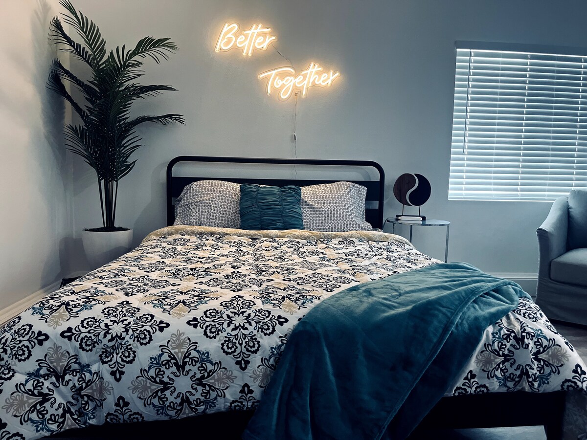 DESIGN-CLEAN-SAFTY New renovated Private entry Close to a park Bright space Nice designed Tiny home Memory foam mattress-Queen Well organized Clean Desk-work from home Laundry and dryer 2 in 1 machine w/ private bathroom and small kitchen Refrige and microwave Cookware and dish Soft water system Ceiling fan and individual air conditioner Best place for work and relaxation.