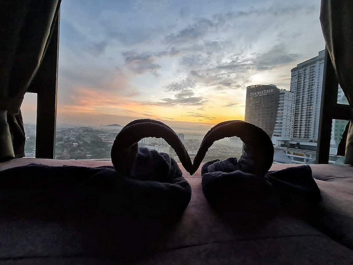 New and comfy Studio Condominium @ 30th. Floor with views of the city and part of the sea. Located at the center of Malacca Town which is close to shops and restaurants. There is also a cinema just a few floors down which can satisfy all movie lovers. This place is suitable for small families, couples looking for a honeymoon and also backpackers.