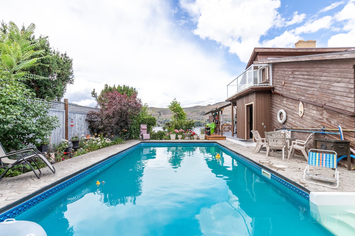 A stunning home w/ incredible panoramic views of lake & mountains, large hot tub & sauna, heated outdoor pool (May - Sept) The top ranked ABnB in the Okanagan, you are booking a breathtaking 3 level 6 bedroom chalet. We cater to families wanting to experience an exclusive private vacation. Several in & out private lounging areas, kids areas for playing, mostly pet friendly w/ variable fee. No cleaning fees w/ help. Contact us prior to booking