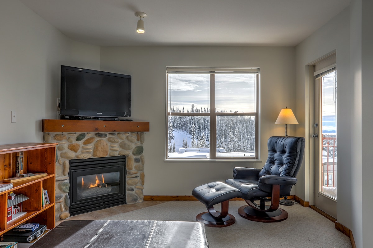 This large 2 bedroom condo is a top floor end unit in the Grandview building with incredible views. Unit has recently been completely renovated. Easy access to Silver Star mountain for skiing with a ski-out run next to the building. Fully equipped kitchen, high quality beds, cozy fireplace will ensure absolute comfort. 10 minute walk to Silver Star village. Best for 2 couples. Sofa converts to a bed for an extra person to sleep on, most suitable for children. Common area hot tub in winter.
