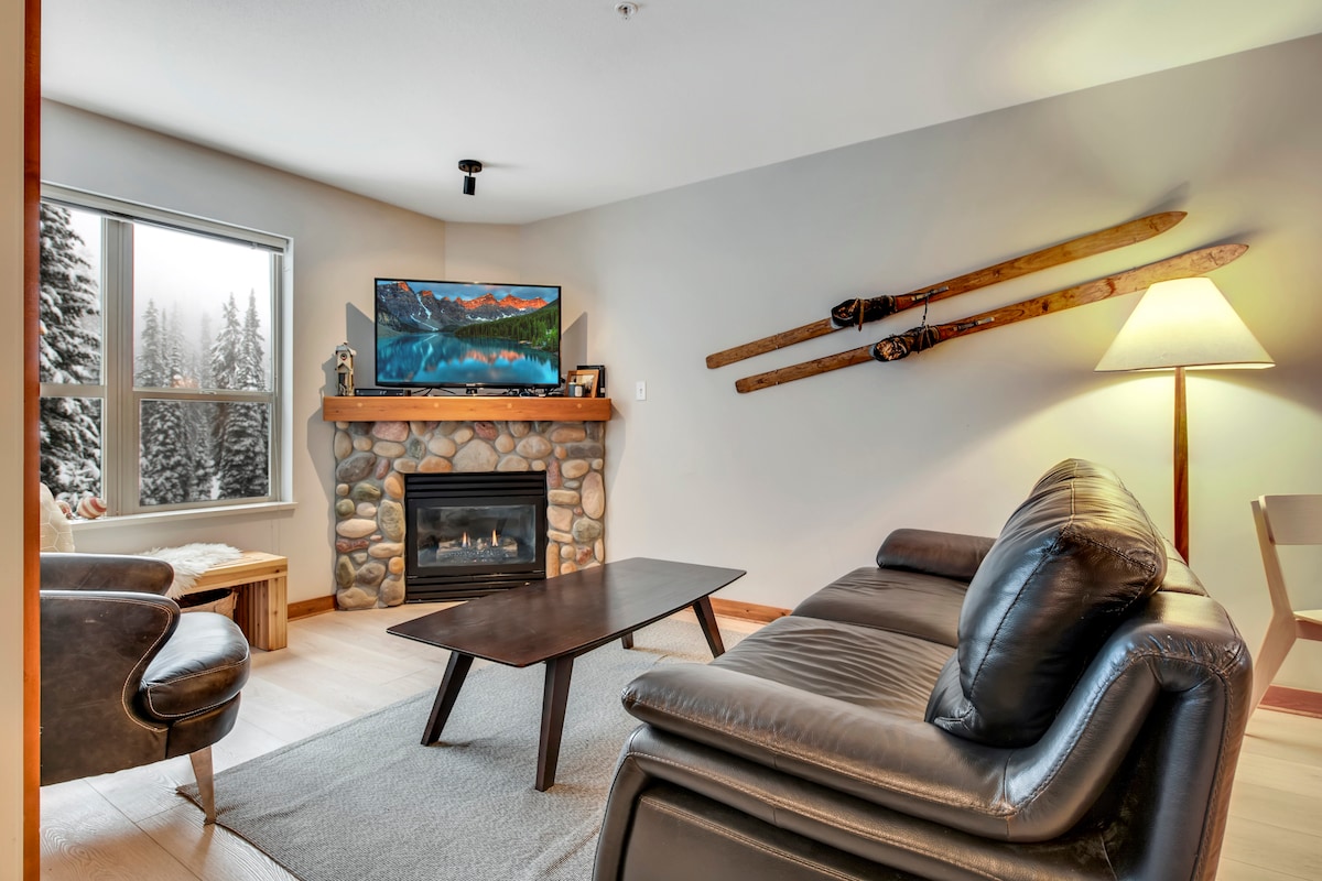 Warm and welcoming one bedroom top floor unit in ski in/ski out condo with king bed. Perfect for a couples getaway to make magical winter memories. Just a three minute walk to the skating pond, tubing, nordic/snowshoe/fat bike trails, and five minutes to the Silver Star village. Robes and plastic traveller mugs are provided for using the shared hot-tub with picturesque views of the greenery and night stars. Boot/helmet/mitt dryer provided to make your stay as comfy as possible.
