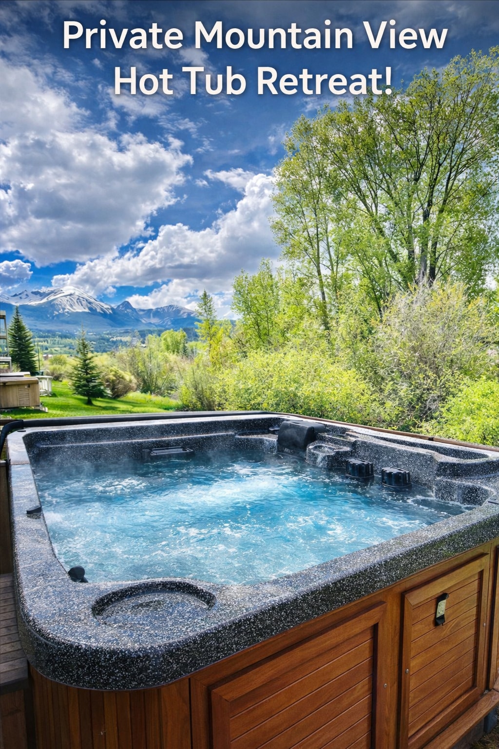 带私人热水浴缸和阿斯彭填充庭院的甲板
