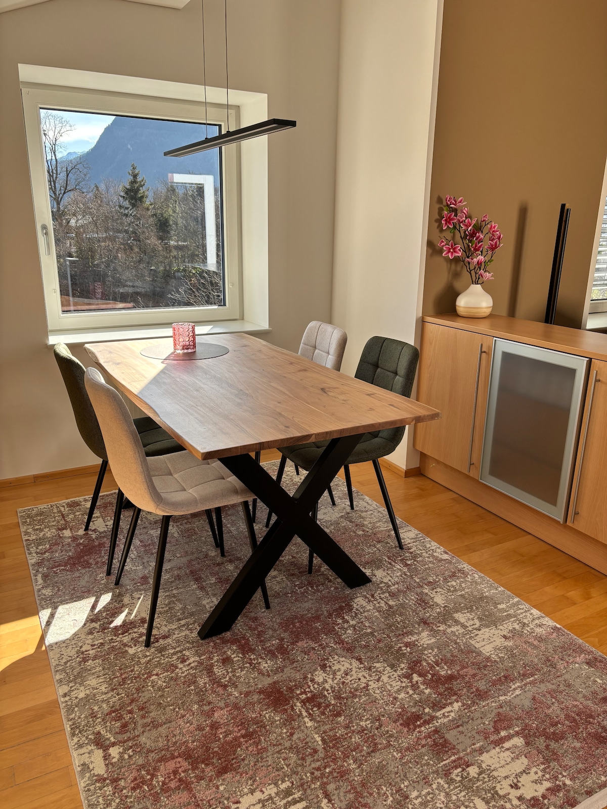Die Wohnung liegt am Stadtrand von Bludenz und verfügt über einen großzügigen Abstellraum für Sportgeräte sowie eine eigene Waschküche mit Waschmaschine, Trockner und der Möglichkeit, Bekleidung aufzuhängen. Supermärkte sind in ein paar Minuten zu Fuß erreichbar. Bushaltestellen befinden sich in unmittelbarer Nähe, zum Bahnhof gelangt man in kurzer Zeit. Bludenz ist der ideale Ausgangsort in verschiedene Wander- und Schigebiete. Arlberg, Sonnenkopf, Montafon, Golm, Gargellen, Brandnertal…).