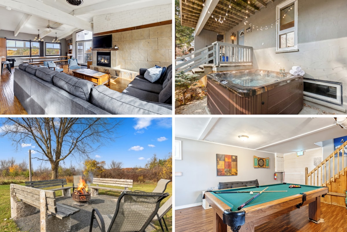 PROMOTION: book 2 nights get 1 free!* Follow us @cottagesatblue to qualify This large 2,400 sq ft 3 level, 6 bedroom, 2 bathroom Swiss-style chalet boasts wonderful views of Blue Mountain. Enjoy the view of Blue Mountain from the wrap-around deck or from behind the wall-to-wall windows, in the comfort of the living room with a real wood-burning fireplace. Enjoy all the conveniences of home! *Promo does not apply to holidays or long-weekends - please contact the hosts for further information