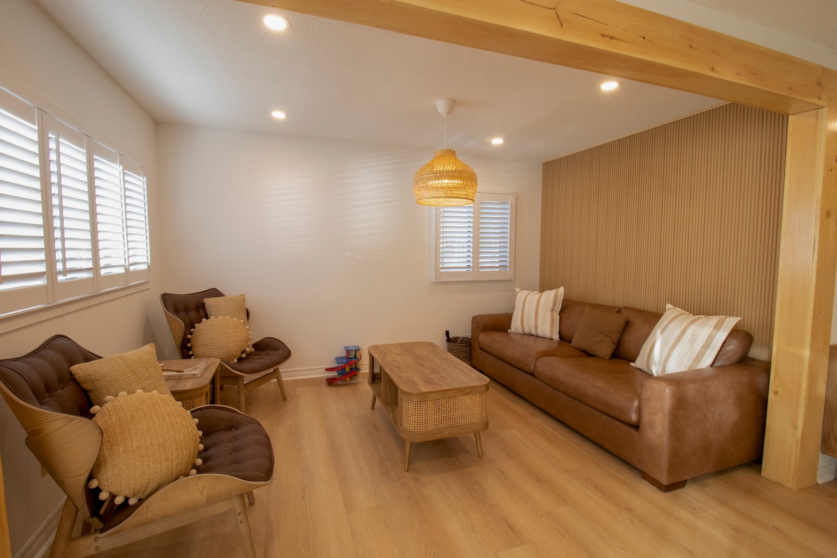 Bluestone is located less than 10 minutes' drive from beautiful Awenda Provincial Park in Tiny, Ontario. Every choice was made with guest comfort in mind. In the Summertime, take a short walk down a wooded path to Georgian Bay and perfect swimming, or explore a hiking trail and take in the natural beauty of the area. In Winter, enjoy skiing and snowshoeing locally, or stay in, put a record on, and cozy up by the fire. Licence STRTT-2026-057