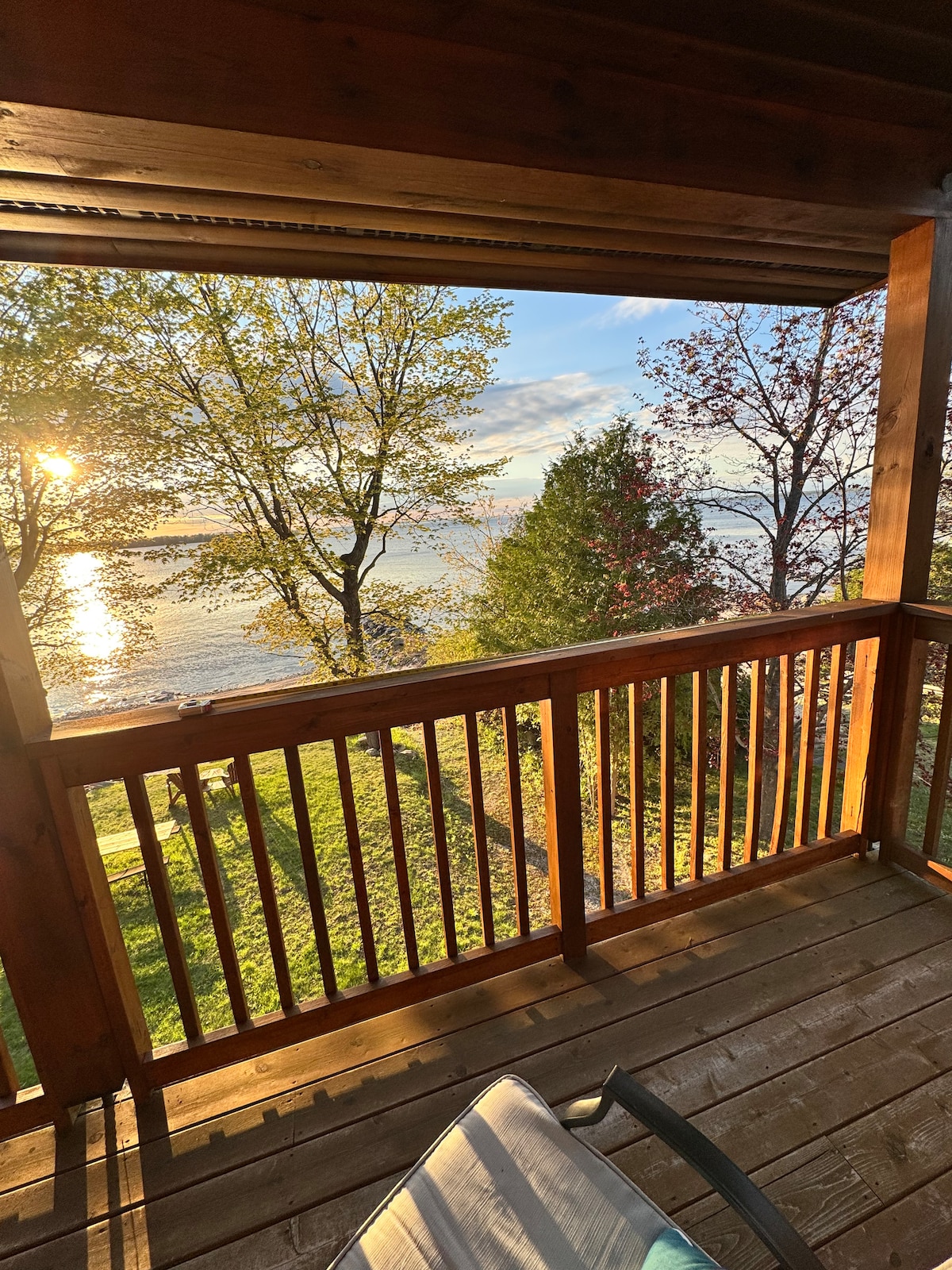 Part log treehouse, part beach house and 100% of what you need to enjoy a peaceful getaway only 1.5 hours from Toronto! Walk up the private staircase and pause to enjoy the spectacular treetop and waterfront views from your own wraparound deck before entering your 900 sq. ft. oasis. Enjoy access to your own lawn, picnic table and beach* area and all that Georgian Bay and the area has to offer. *water levels fluctuate Insta: sunset_beach_cottage_canada
