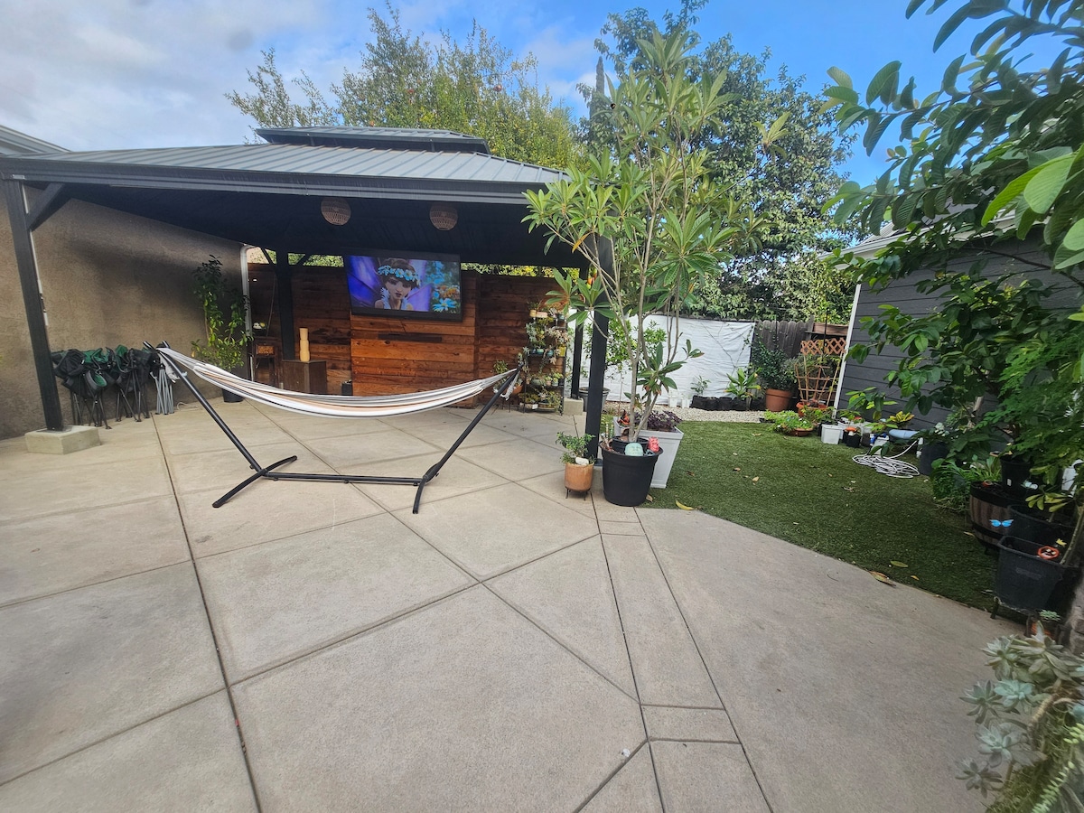 Entire place! not attached to the house except for a wall that is filled with insulation & sound proof drywall. Very quiet & a 1/2 mile from freeway or to CLU. Private entry, a patio, remodeled bedroom & bath. Cal King bed, desk for laptop, Kcup coffee, mini fridge, microwave and HD TV w/ RoKu 650mb WifI perfect for a business traveler or couple on vacation. (w/ a baby or toddler,) A toddler mattress is available on request. Free (40 amp 240volts) for your electric car 9pm-4pm off peak house
