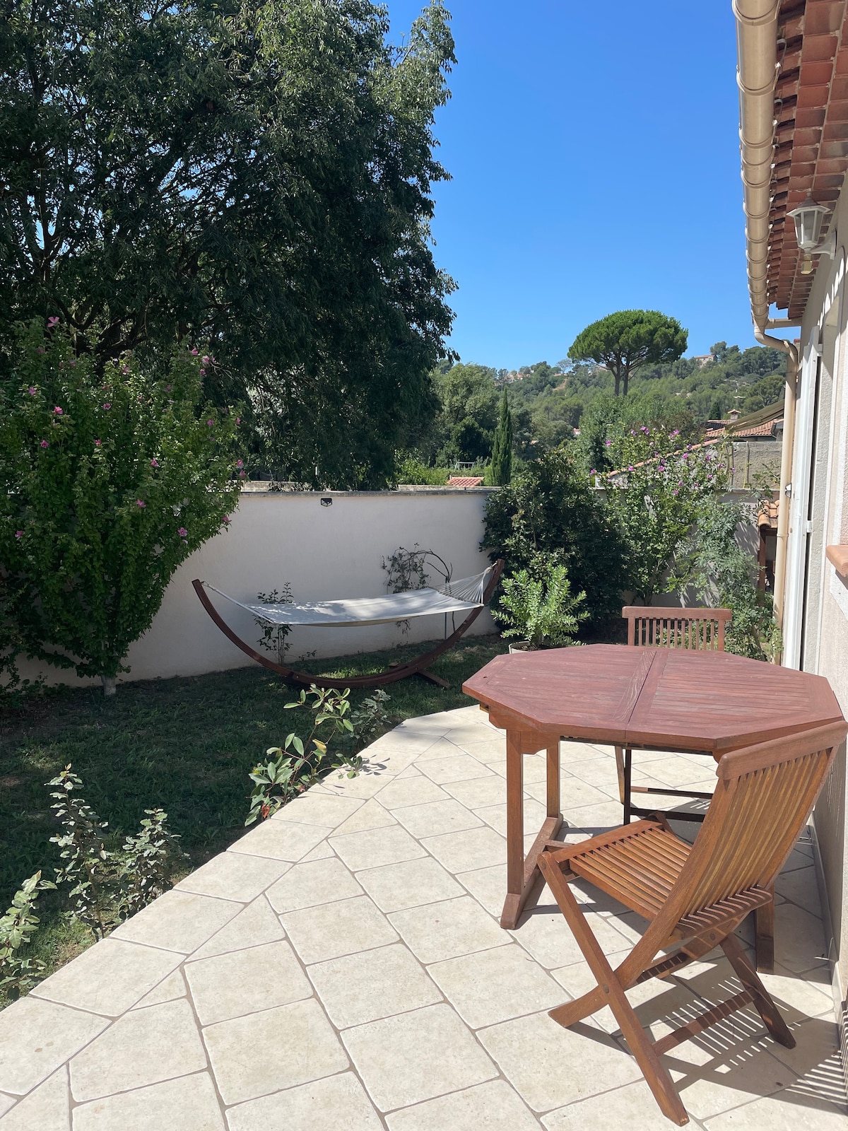 sur le haut de Bouc Bel Air , venez profiter du calme à 10 mn d'Aix en Provence et 25 mn de Marseille et des plages de la côte bleue dans un grand T3 confortable et bien équipé. la véranda donne sur la pinède et le vieux village. deux chambres confortables avec accès direct sur la terrasse. un véhicule est nécessaire car il n'y a qu'un bus qui va vers Aix ou vers Gardanne à proximité de la maison .