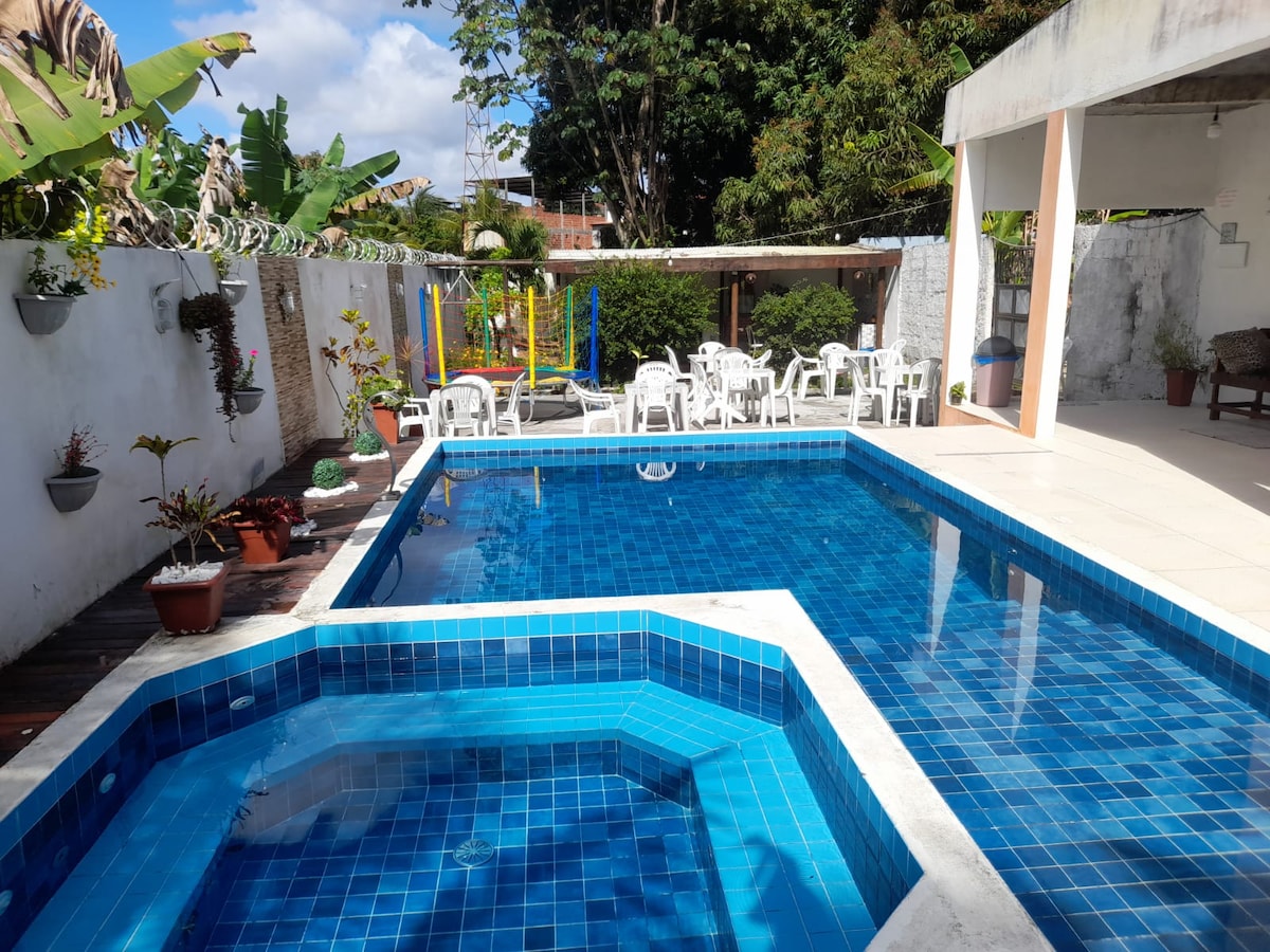 Esqueça suas preocupações neste lugar espaçoso e tranquilo. Descanso e lazer garantido. Ideal para passar um final de semana com a família e amigos. Campo de futebol, piscina, churrasqueira, ar condicionado, estacionamento incluso, wifi e um espaço arborizado par a garantir aquele final de semana. Venham aproveitar!