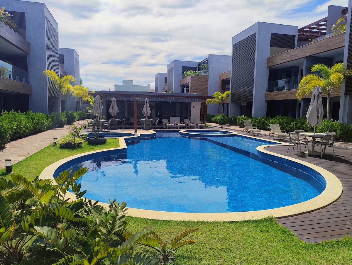 Vilage novo em Itacimirim localizado a apenas 250m da Praia do Surf! Apto com 2 suítes climatizadas, cozinha equipada, roupas de cama e banho e 2 vagas privativas. Até 5 hóspedes. Condomínio com infraestrutura de lazer e segurança: piscina adulto e infantil, parquinho, salão de jogos, campinho de futebol, redário, portaria 24 horas, local para guardar bike e prancha.