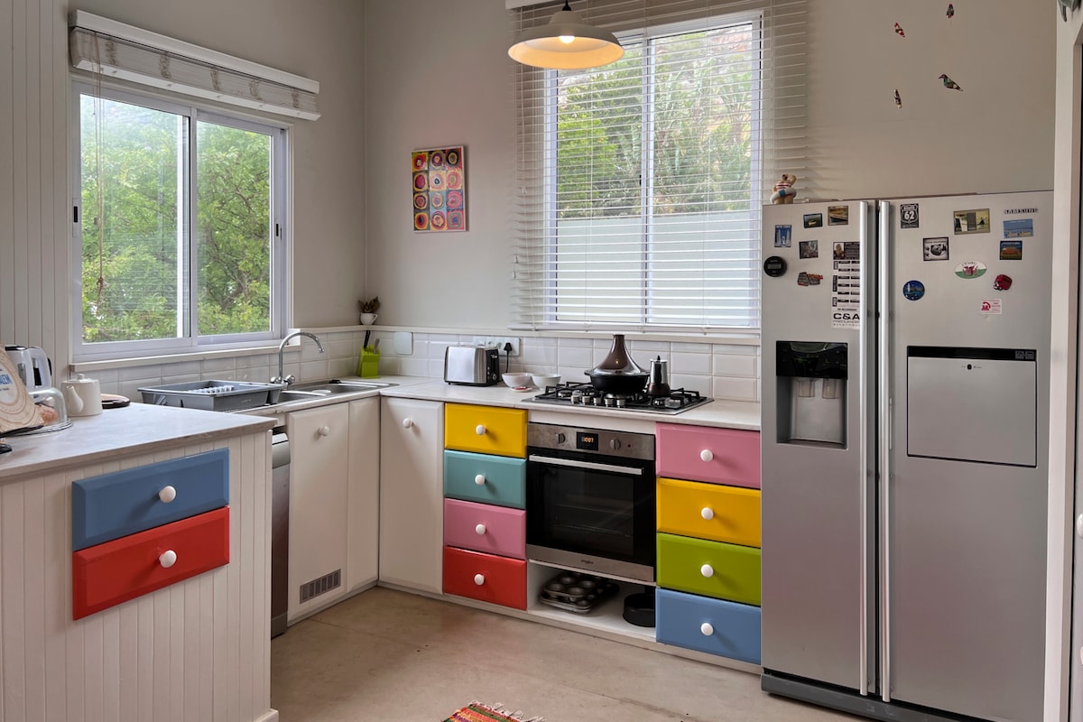 The sea views from our airbnb suite (2 bedrooms and a lounge) are fabulous. Behind us is the mountain reserve and in front lies the wide expanse of False Bay. Down below on the rocks is a natural tidal pool, safe for swimming. We are close to Kalk Bay fishing harbour, the quaint Kalk Bay village, several other tidal pools (perfect for cold swimmers!) and Fishhoek & Muizenberg beaches. We have newly renovated and enlarged our Airbnb space which is now separate from our living space and private.