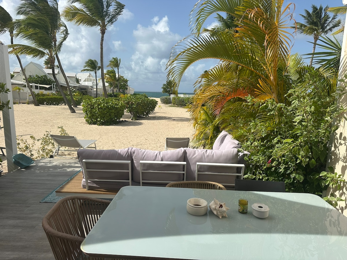 5 star hotel luxury is yours in this modern beach home! 2 guest rooms with en-suite bathrooms and deck access. Enjoy cooking your own meals and dine inside or on the deck (or beach!). Largest deck on Simpson Bay beach has it all: huge daybed, loungers, living and dining areas for your comfort and pleasure. Unwind in the den and enjoy the big screen there or in either bedroom. Your neighbor is a boutique hotel and will gladly serve you meals and drinks right to your deck! Much more info available