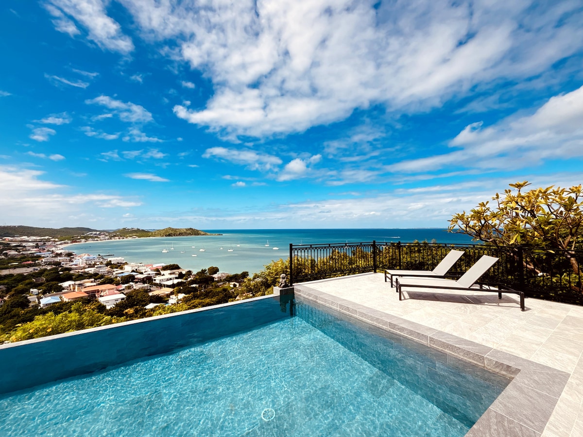 Wake up to the magnificent panoramic view of the lagoon on the top floor, rejuvenate your body with a refreshing dip in the private rooftop infinity pool with a coffee or tropical drink. Take a 10 mins stroll to the famous Mullet bay Beach and grab a few freshly French croissants by the Square. After sunset, enjoy the plentiful neighborhood bars and restaurants or take 5 mins drive to Maho where you will find a vast variety of restaurants, casino and clubs or Porto Cupecoy for romance spot.