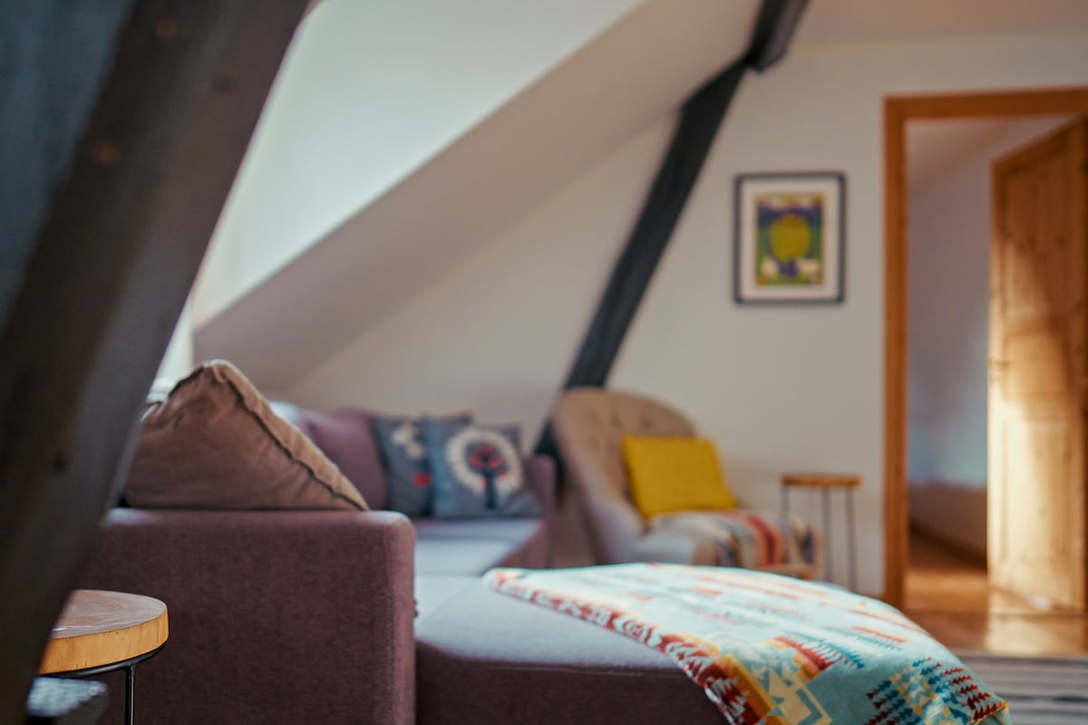 Välkommen till Grönhems gård i hjärtat av Österlen. Här bor ni i en av två lägenheter, med egen trädgård, i en korsvirkeslänga med anor från 1700-talet. Gården ligger inbäddad med böljande beten för våra hästar i Österlens kulliga landskap. Den är belägen mellan Vik och Rörum med närhet till havet och stranden vid Knäbäckshusen samt till två golfbanor. Här finns fina promenadstigar i bokskogar i nära anslutning till gården. Lägenheten har en öppen planlösning med integrerat kök och vardagsrum.