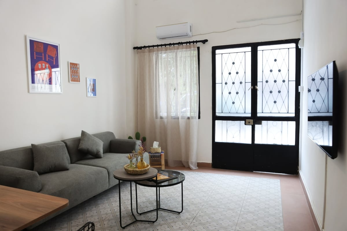 Stay in an authentic Lebanese gem in the heart of Achrafieh. This 1-bedroom flat blends traditional architecture—arched doorways, high ceilings, and vintage tiles—with modern furniture and full amenities. Perfect for couples or friends, it offers 24/7 electricity, a front porch, kitchen, and a central location steps from ABC Mall, Sassine Square, and cafes. A cozy, stylish take on old Beirut.