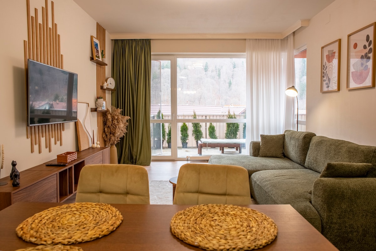 Welcome to Alma Apartment, a charming apartment located in Sinaia. This cozy place is perfect for families or friends, accommodating up to 4 guests. Upon arrival, you'll encounter modern amenities and thoughtful touches that ensure a convenient and enjoyable stay. And yes, your furry friends are more than welcome— our property is pet-friendly! After exploring the breathtaking sights of Sinaia and nearby attractions, relax and unwind in the comfort and elegance of Alma Apartment.