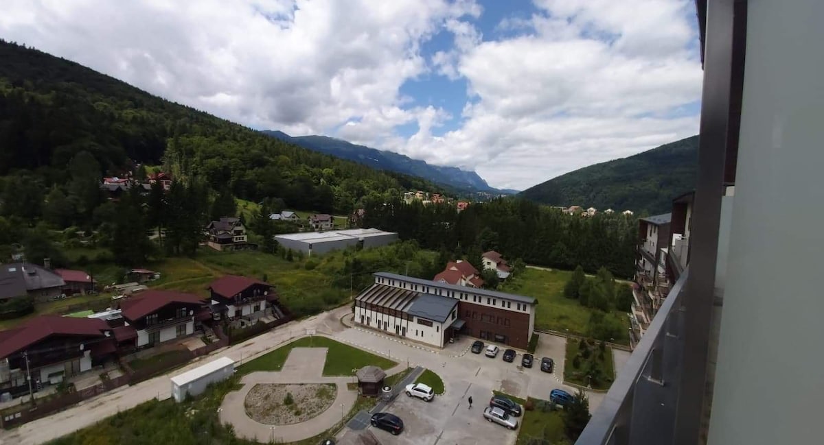 Delightful studio in a cozy and quite location between the mountains. The apartment has high-speed internet, fully equiped kitchen, a modern bath, a balcony with a splendid mountain-view and a private underground parking spot. The building and the home furniture are new. The apartment is professional disinfected after each visit. Smart home - easy access by code. SPA access (Pool & Sauna) at 20 eur/3h or 30 eur/day Restaurant & bar at ground level. The building is protected 24/7.
