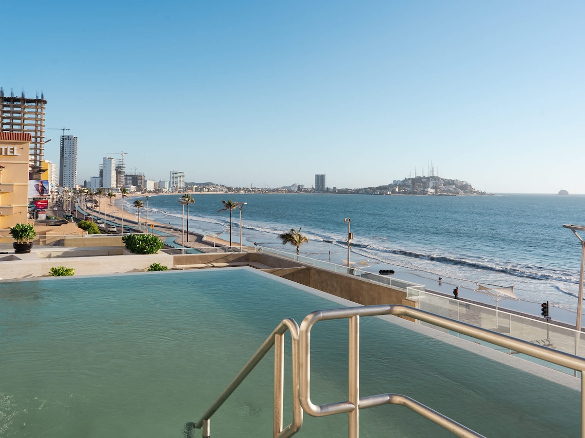 A Guest Favorite for Best Views in Town, centrally located on the Beach Front, among the most sought after Condos in Mazatlan, with an impeccable seven year rental history. Corner Suite on the 14th Floor, Amazing Panoramic Views of Ocean, Beach and City. Walk down to the Sandy Beach, Malecon Boardwalk and Restaurants. Starbucks, OXXO convenience store and Pizza Hut located on the first floor. Pool, Gym, Parking and 24/7 Security... An Absolutely Impressive Beach Front Condo Experience.