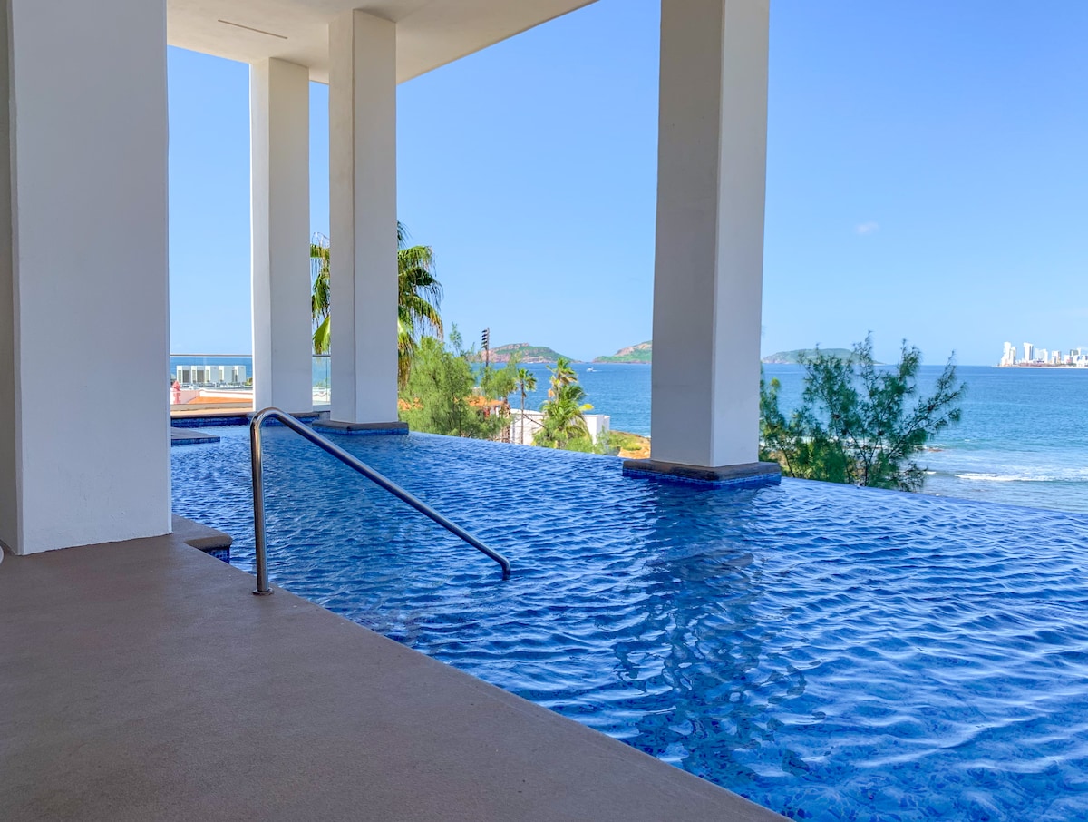 Bienvenido a tu hogar lejos de casa en el corazón de Mazatlán. Este encantador departamento te ofrece una vista impresionante al mar, perfecto para disfrutar de atardeceres inolvidables desde la comodidad de su alberca infinita. Ubicado cercas de Olas Altas, estarás a pasos de la playa y de una vibrante selección de restaurantes, bares y tiendas. Ya sea que busques un día de relajación en la playa o explorar la cultura local, este es el lugar ideal para ti.