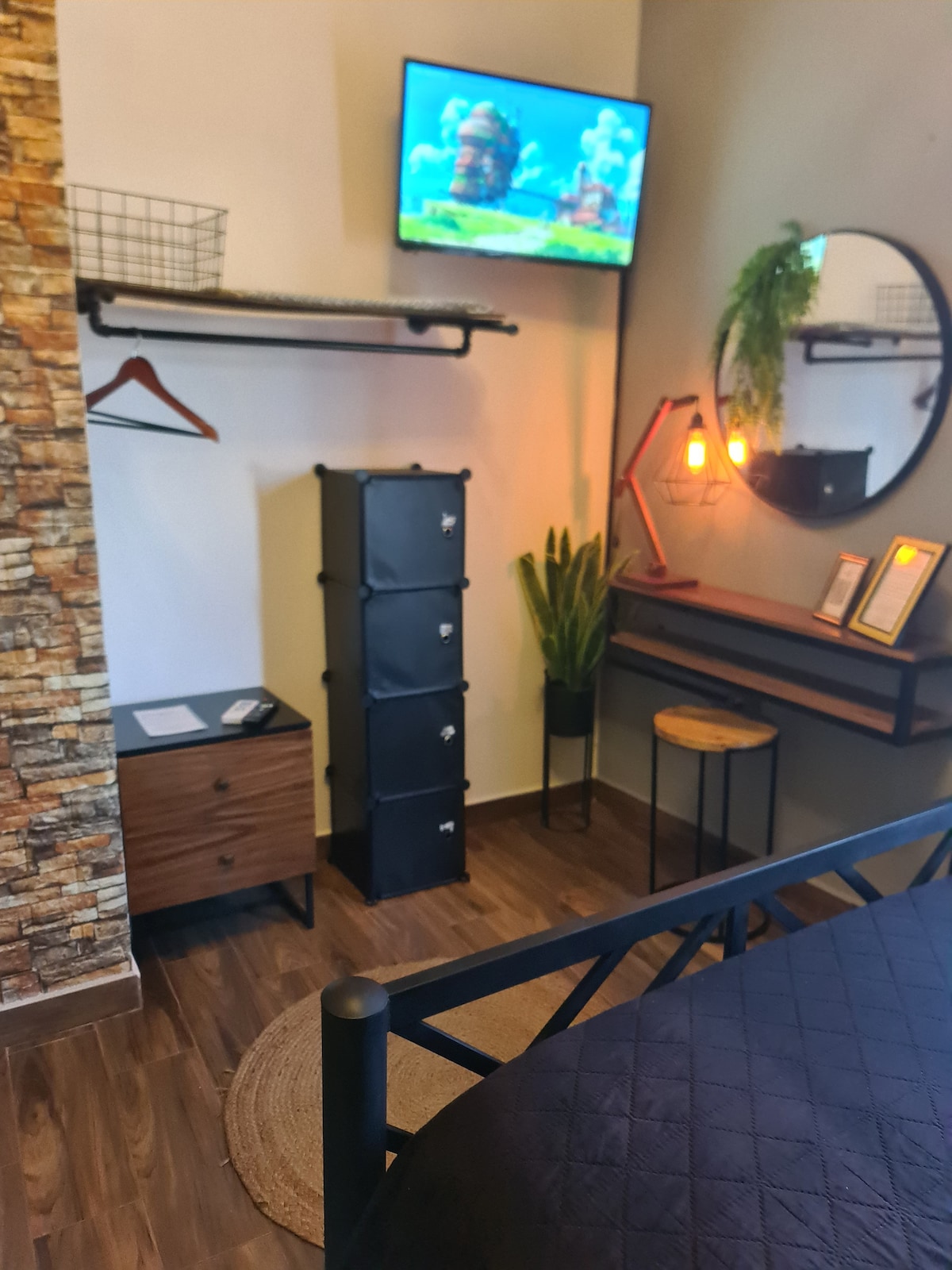 A 7 minutos de la zona residencial La Primavera y muy cercano a Plaza San Isidro y Plaza Explanada, completamente refrigerada, ideal para ir de trabajo o de placer, con mucho espacio para tus amistades y cochera privada para automóvil mediano (4.85x2.50), cocina completa con estufa, microondas, refrigerador y utensilios para cocinar o servir, área de trabajo, servicios de internet y TV (smart y cable), con cercanía a lavandería, comida preparada, tiendas de autoservicio, gym y cines.