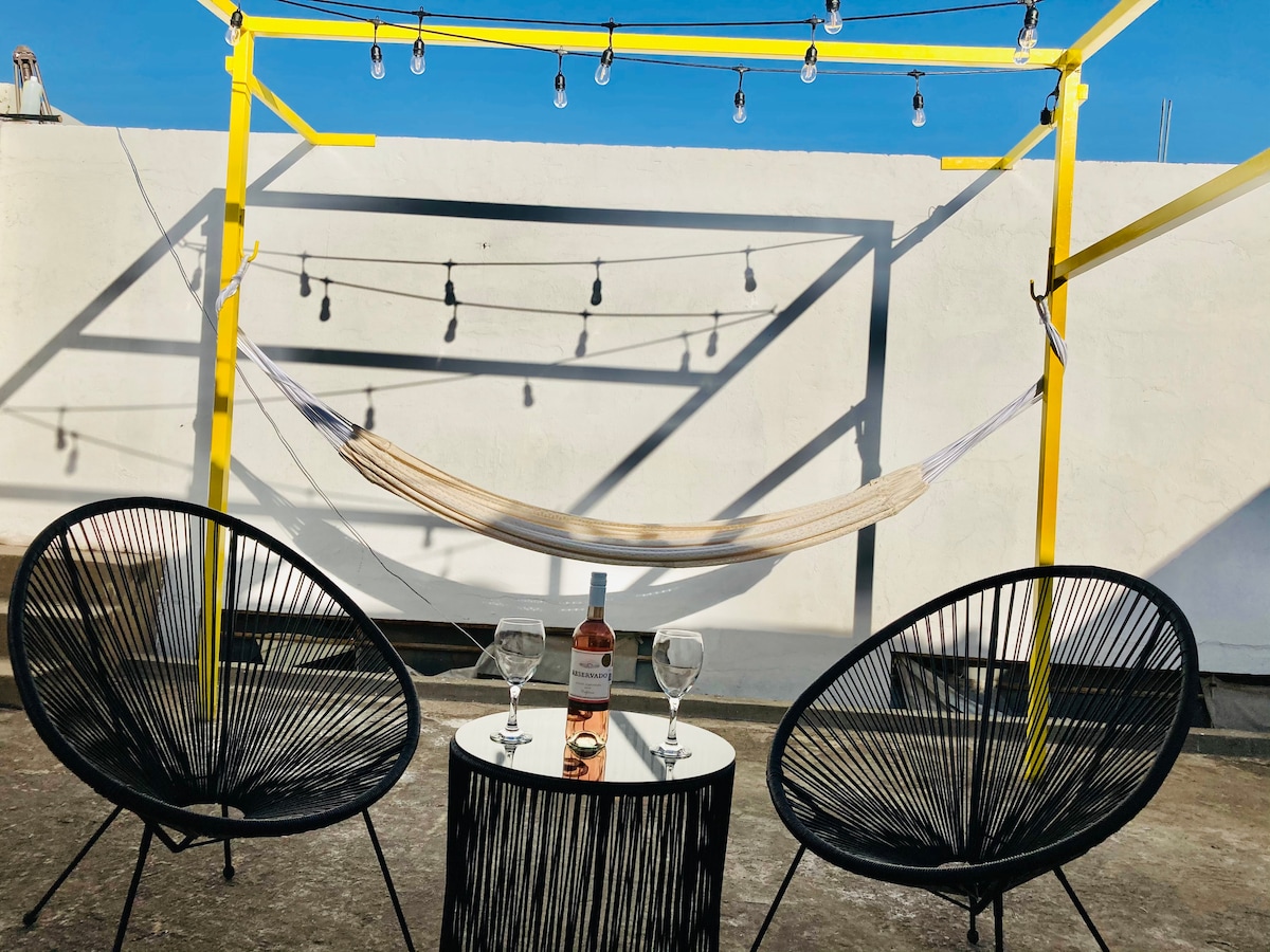 Disfruta de un espacio cómodo, iluminado y con excelente ventilación, ideal para descansar y relajarte. cuenta con una bonita decoración y todas las comodidades que necesitas. Incluye una cocina práctica y equipada, un baño amplio y dos habitaciones completas con camas confortables que invitan al descanso. Además, podrás disfrutar del patio con hamaca y sillas acogedoras, ideal para leer, tomar }