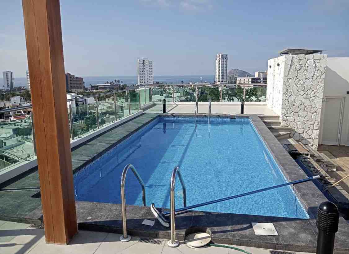 Hermosas puestas de sol desde el balcón de este departamento completamente equipado. Increíbles vistas, al océano y centro histórico. Sobre uno de los malecones más largos del mundo por el cual puedes tomar una pequeña caminata para llegar a monumentos, atracciones, bares, restaurantes y vida nocturna. Disfruta de su alberca, jacuzzi, sauna, roof garden, gimnasio, squash y game rooms. Todo lo que necesitas para unas relajadas y divertidas vacaciones. Para 6 adultos y 2 niños menores de 12