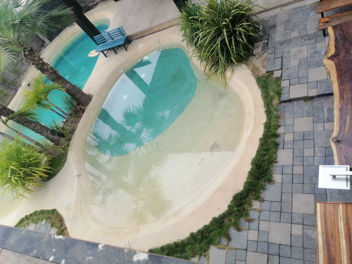 靠近海滩的美丽农场,带私人游泳池