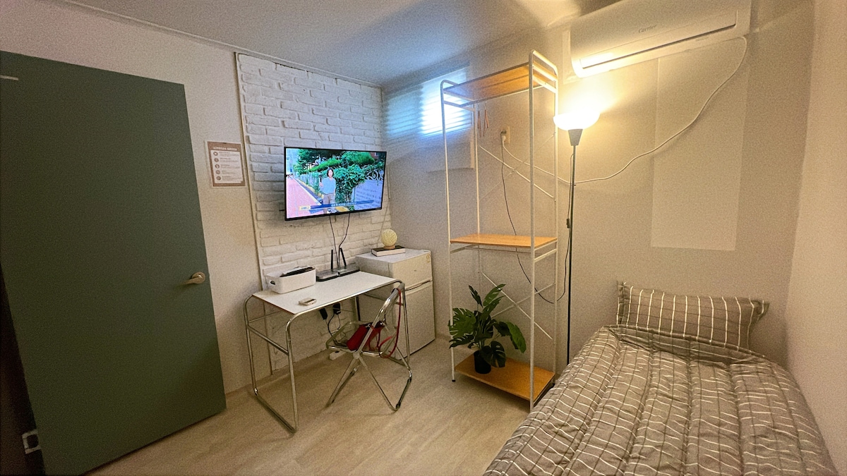 🏠 Pogn Hapjeong 포근 합정 *25년 open & 화장실 포함 전객실 리모델링 *호텔식 구조로 개인 객실 및 화장실 사용 / 창문 있음 *전객실 금연 (별도 흡연공간 3층 외부에 위치) *201호 1인 전용 객실 #위치 합정역 & 망원역 도보 7분 거리로 접근성이 매우 좋아요! 초등학교 바로 앞이라 조용하고 안전합니다 :) *도보기준* 홍대 중심가 15분 / yg엔터 9분 메가커피 1분 / 세븐일레븐 3분 / 올리브영 7분 망원시장 10분 / 망원한강공원 10분 📍홍대입구역 도보 20분 / 버스 8분 (추천🌟) *숙소 도보 1분거리 [성산초등학교입구] 정류장에서 271번 버스로 4정거장 (배차간격 6분) 📍인천공항에서 숙소까지 오는 법 [인천공항] ↔ [합정역] 6002번 공항버스 약 40분 소요 (환승X, 하루 71회 운행) 합정역 하차 후 도보 7분이면 숙소 도착